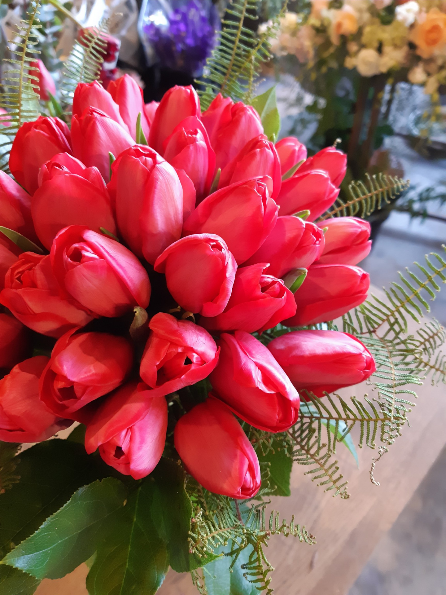 二次会用ブーケにはチューリップをふんだんに使い、チューリップのみのクラッチブーケにしました。