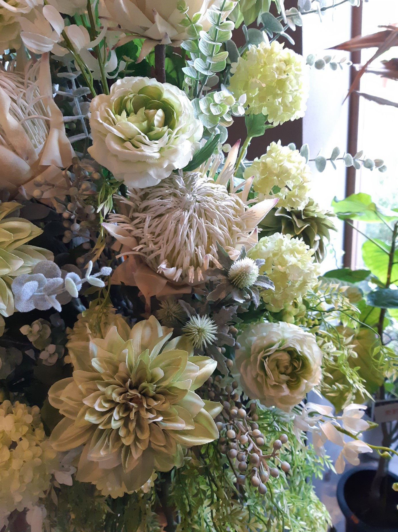 エントランスの造花装飾を依頼するなら大阪の旭区にある花屋|結いはなで 2020/11/24 エントランスの造花装飾 エントランスの造花装飾を頼むなら大阪の旭区にある花屋|結いはなで 白とグリーンの造花でスタンド装飾。 爽やかな色合いで。