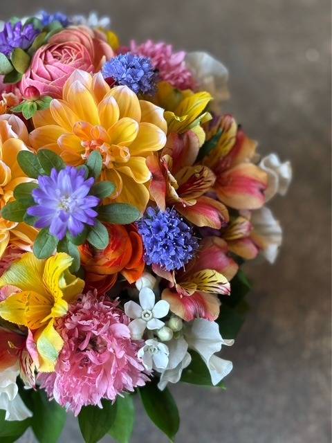 お誕生日に花を贈るなら大阪の旭区にある花屋|結いはなで 2026/04/05 お誕生に贈るアレンジメント お誕生日贈るアレンジメント オレンジ、白、ブルーの華やかな感じでお作りしました。 ギャラリー一覧 Instagram