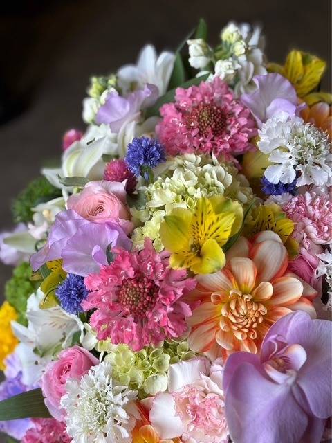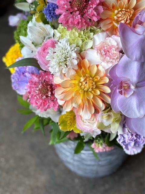 ダリアも入れてかわいいアレンジメントにしました。