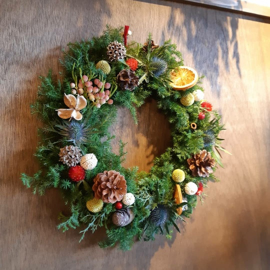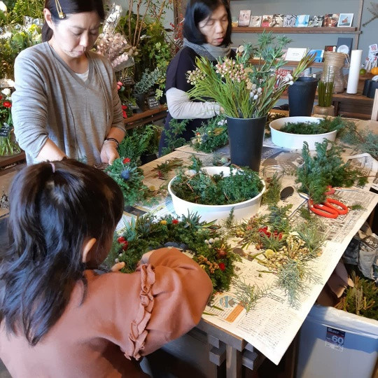 初めてのリース作りで最初は作れるのかな?と思っていましたが、上手に作ることができてとても楽しい時間でした。ワイヤーでぐるぐると巻き付けながら、自由に花の組み合わせをしながら作っていきました。集中しすぎて無言になる時間が多く(笑)最後は綺麗仕上がりとてもよかったです。さっそく家に飾りたいと思います。