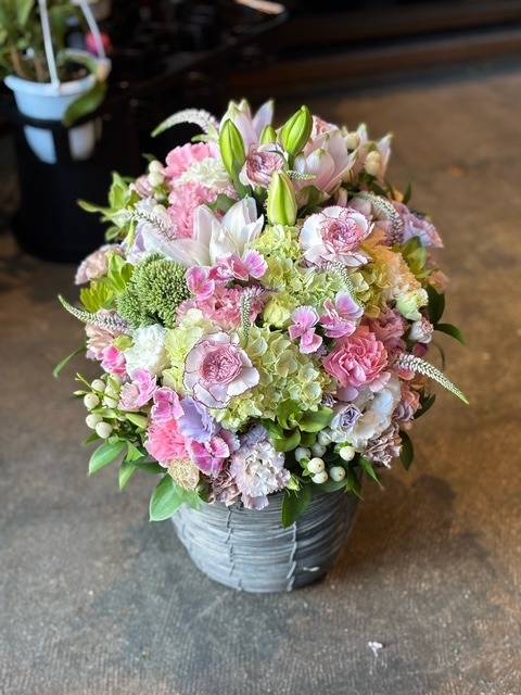 お供えのアレンジメントを贈るなら大阪の旭区にある花屋|結いはなで 2025/08/25 お供え用アレンジメント お供えのアレンジメント 白とピンクの可愛いアレンジメントに仕上げました アジサイと八重咲のユリを入れて清楚な色合いにしました お供えのアレンジメント ギャラリー一覧 Instagram