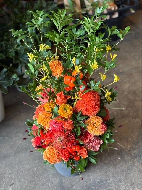 ワインバーの周年のお祝いに花を贈るなら大阪の旭区にある花屋|結いはなで 2025/10/06 ワインバーの15周年御祝 ワインバーに贈る15周年御祝のフラワーアレンジメント オレンジ色の秋らしいアレンジメントに 金木犀のオレンジをイメージして仕上げました ギャラリー一覧 Instagram