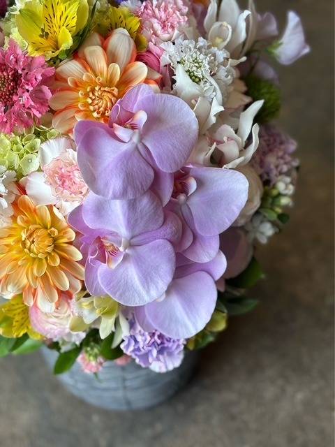 ダリアも入れてかわいいアレンジメントにしました。